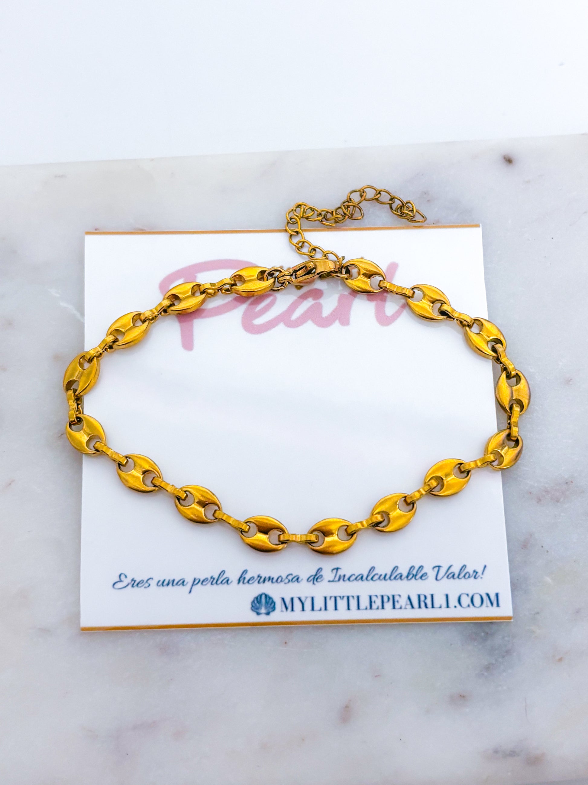 Diseñada para acompañarte todos los días sin perder brillo ni color. Mide 7” con 2” de extensión, lo que la hace perfecta para adaptarse cómodamente a tu muñeca. Su material en acero inoxidable garantiza durabilidad, resistencia al agua y estilo en todo momento.