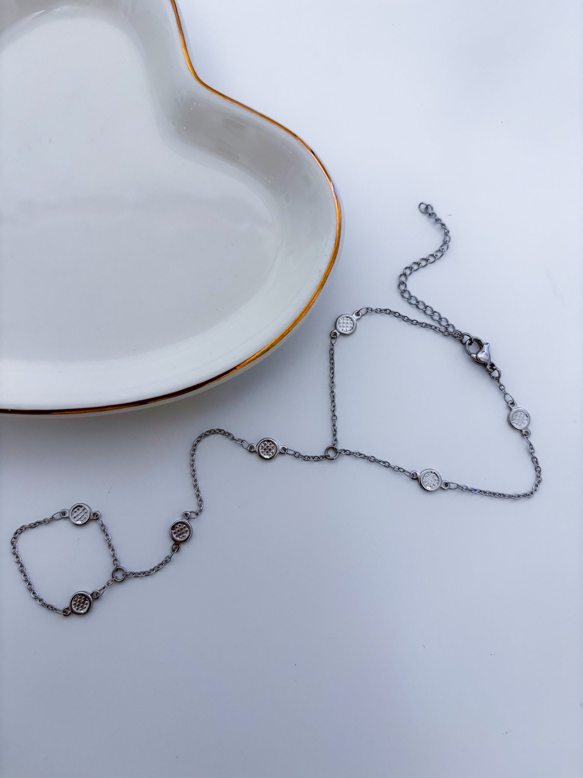 Elegante y versátil, diseñada en stainless steel para acompañarte todos los días. Su detalle de aros enlazados simboliza unión y fuerza, ajustable de 7” con 2” de extensión para un fit perfecto en cualquier ocasión