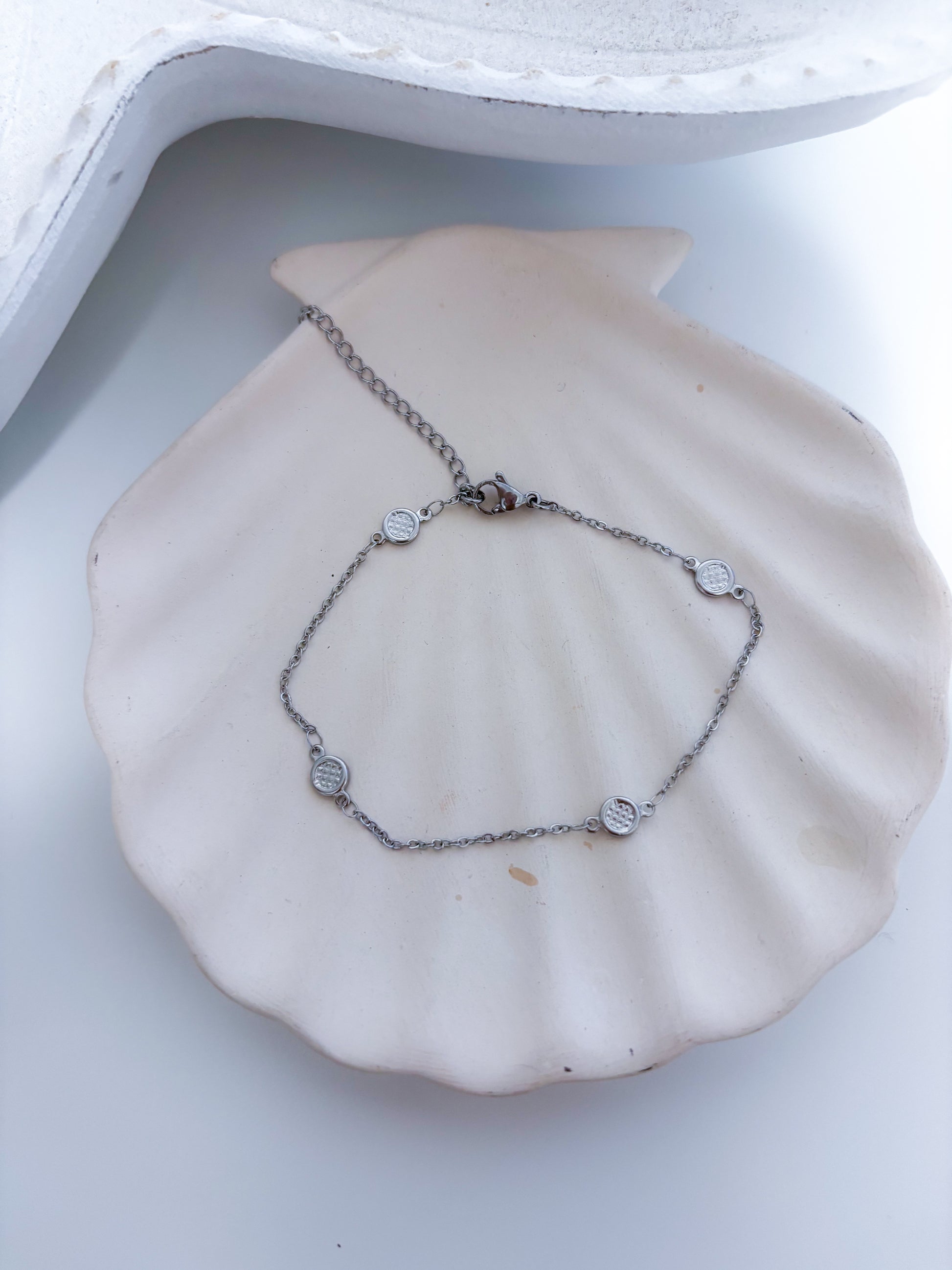 Tobillera en stainless steel, elegante, resistente al agua y perfecta para usar todos los días sin preocuparte por el color. Ideal para darle un toque delicado y moderno a tu look.