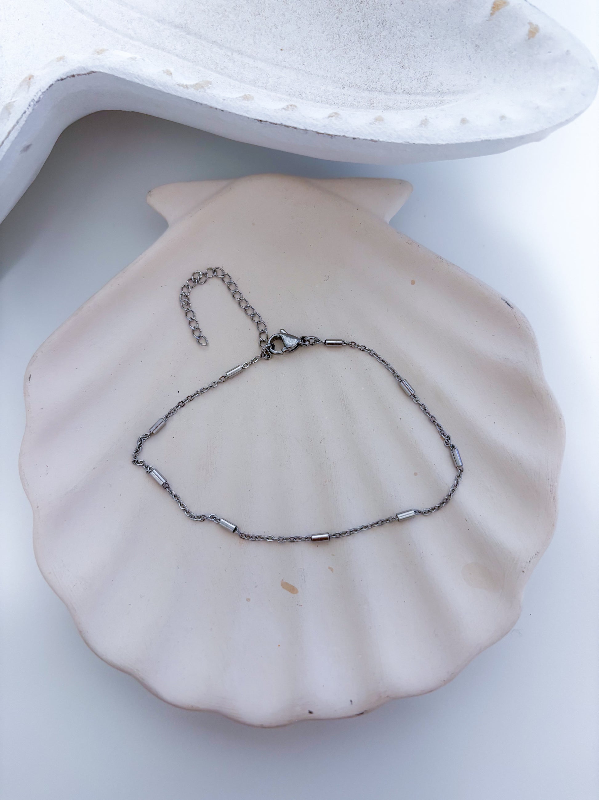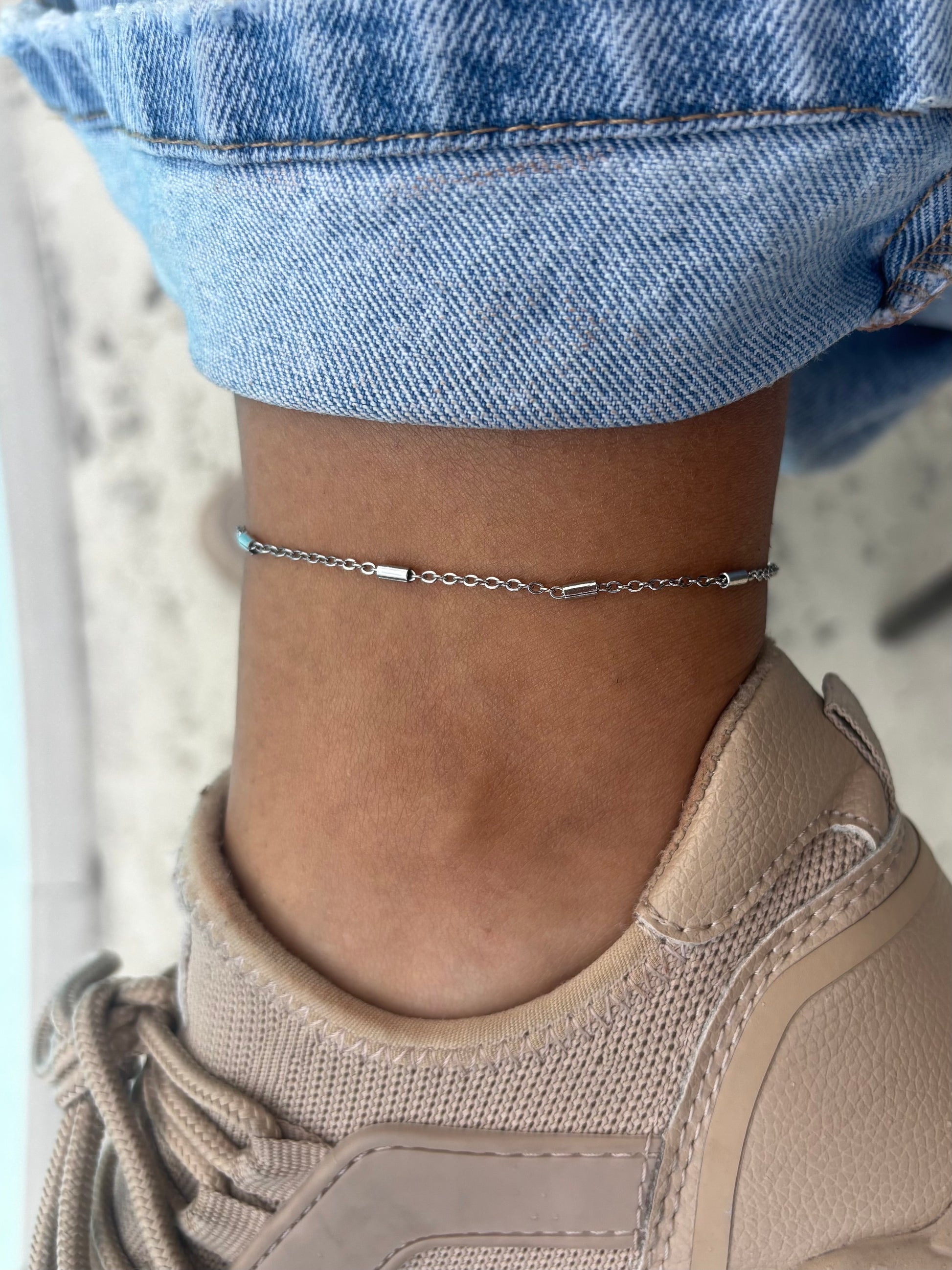 Tobillera en stainless steel, elegante, resistente al agua y perfecta para usar todos los días sin preocuparte por el color. Ideal para darle un toque delicado y moderno a tu look.