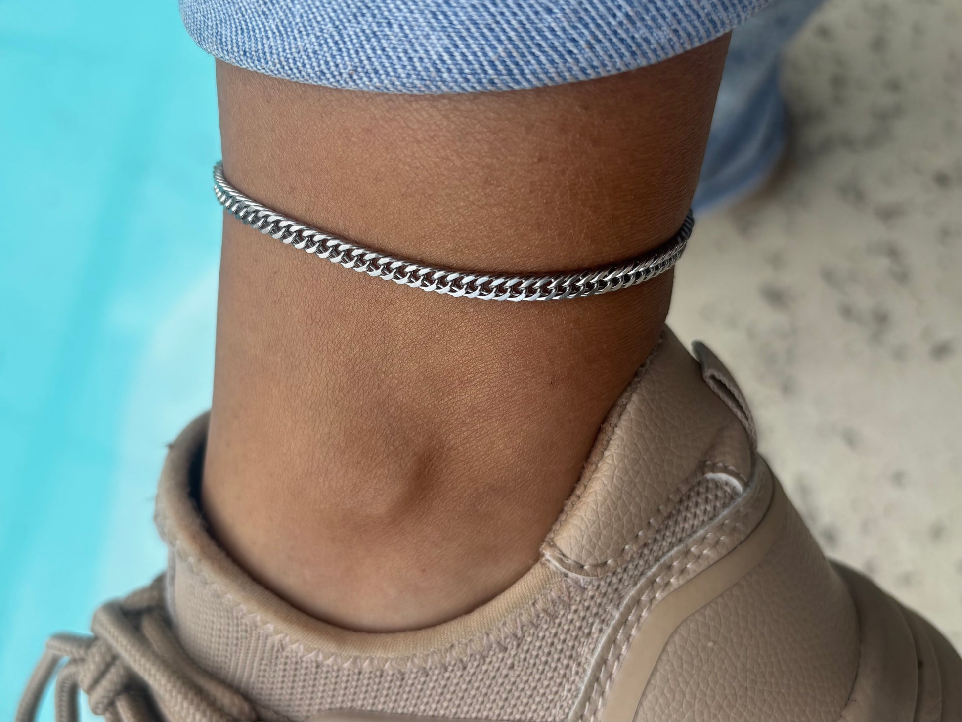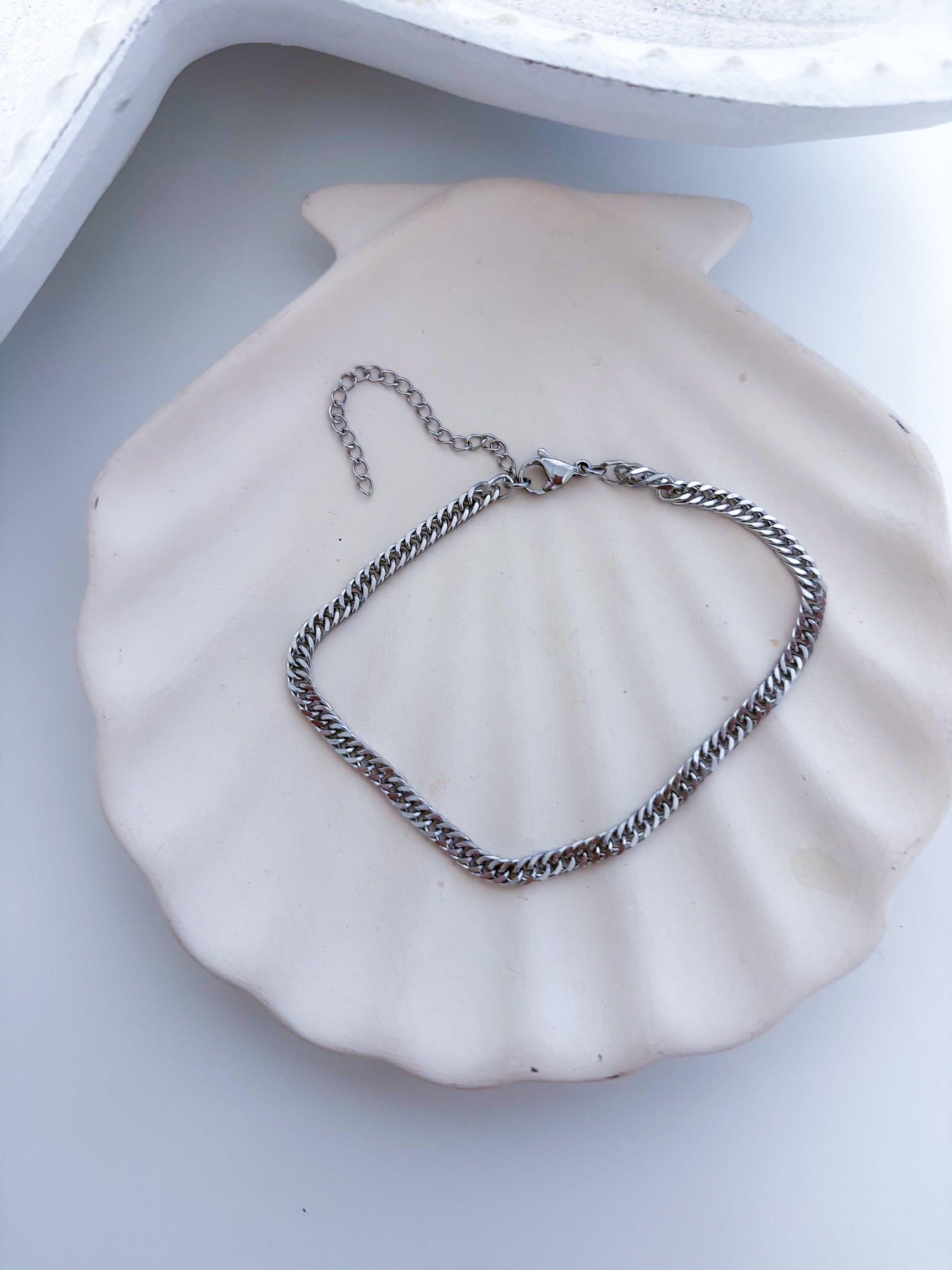 Tobillera en stainless steel, elegante, resistente al agua y perfecta para usar todos los días sin preocuparte por el color. Ideal para darle un toque delicado y moderno a tu look.