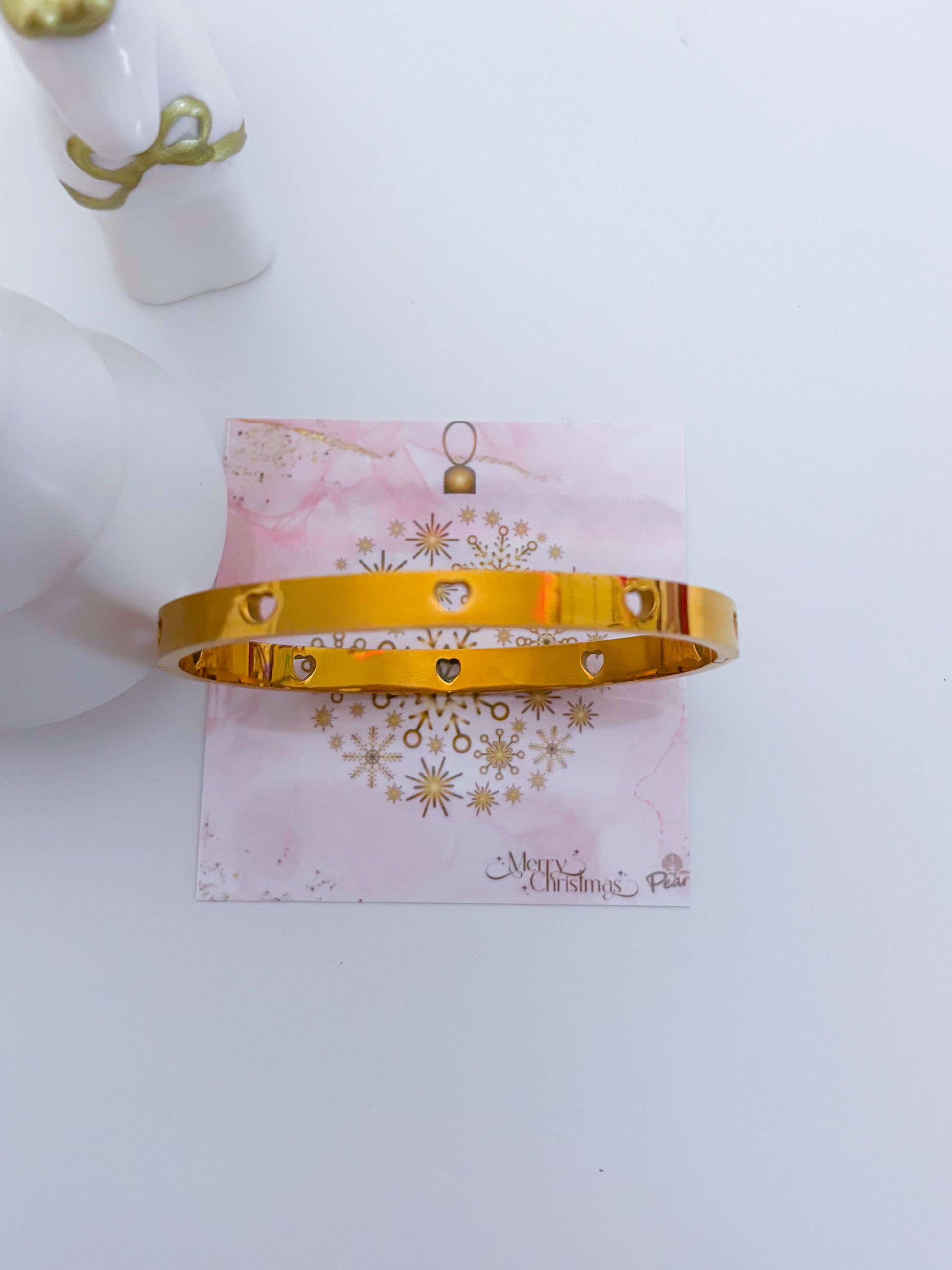 Minimalista y atemporal, perfecta para usar sola o combinar con otras piezas. Su diseño rígido en acero inoxidable asegura brillo duradero y resistencia, ideal para acompañarte en cualquier ocasión.