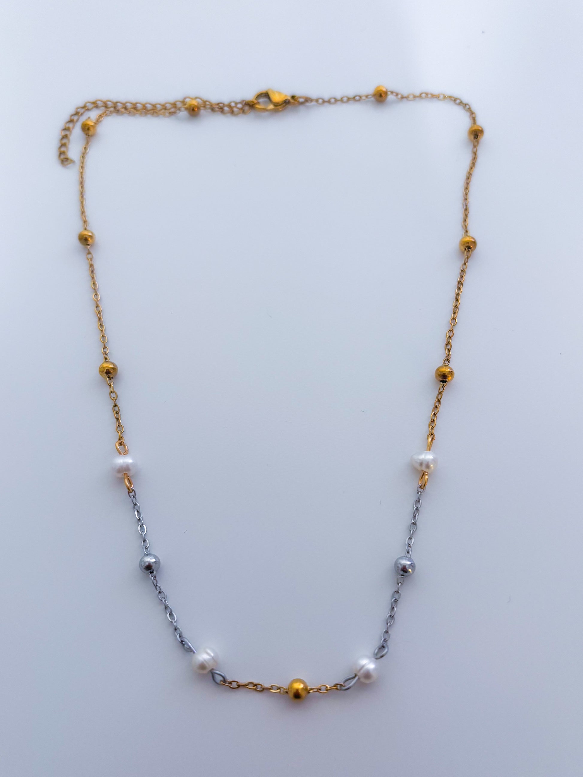 Este collar de stainless steel está diseñado para acompañarte todos los días sin perder su brillo. Mide 16 pulgadas e incluye 2 pulgadas de extensión, lo que te permite ajustarlo a la caída perfecta para cualquier outfit. Su material resistente no se mancha ni se oscurece, ideal para lucirlo solo o combinarlo con tus layers favoritos.