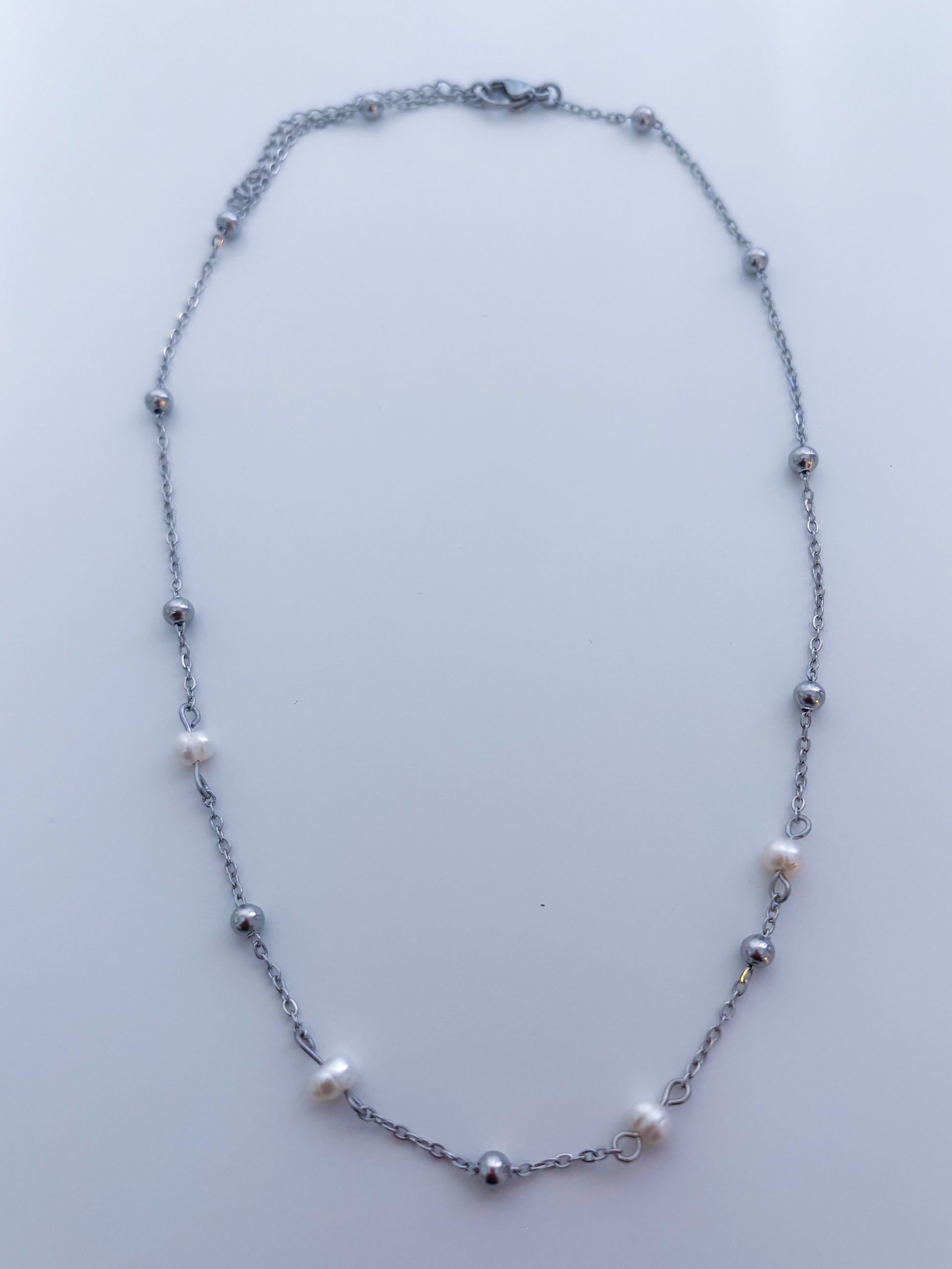 Este collar de stainless steel está diseñado para acompañarte todos los días sin perder su brillo. Mide 16 pulgadas e incluye 2 pulgadas de extensión, lo que te permite ajustarlo a la caída perfecta para cualquier outfit. Su material resistente no se mancha ni se oscurece, ideal para lucirlo solo o combinarlo con tus layers favoritos.