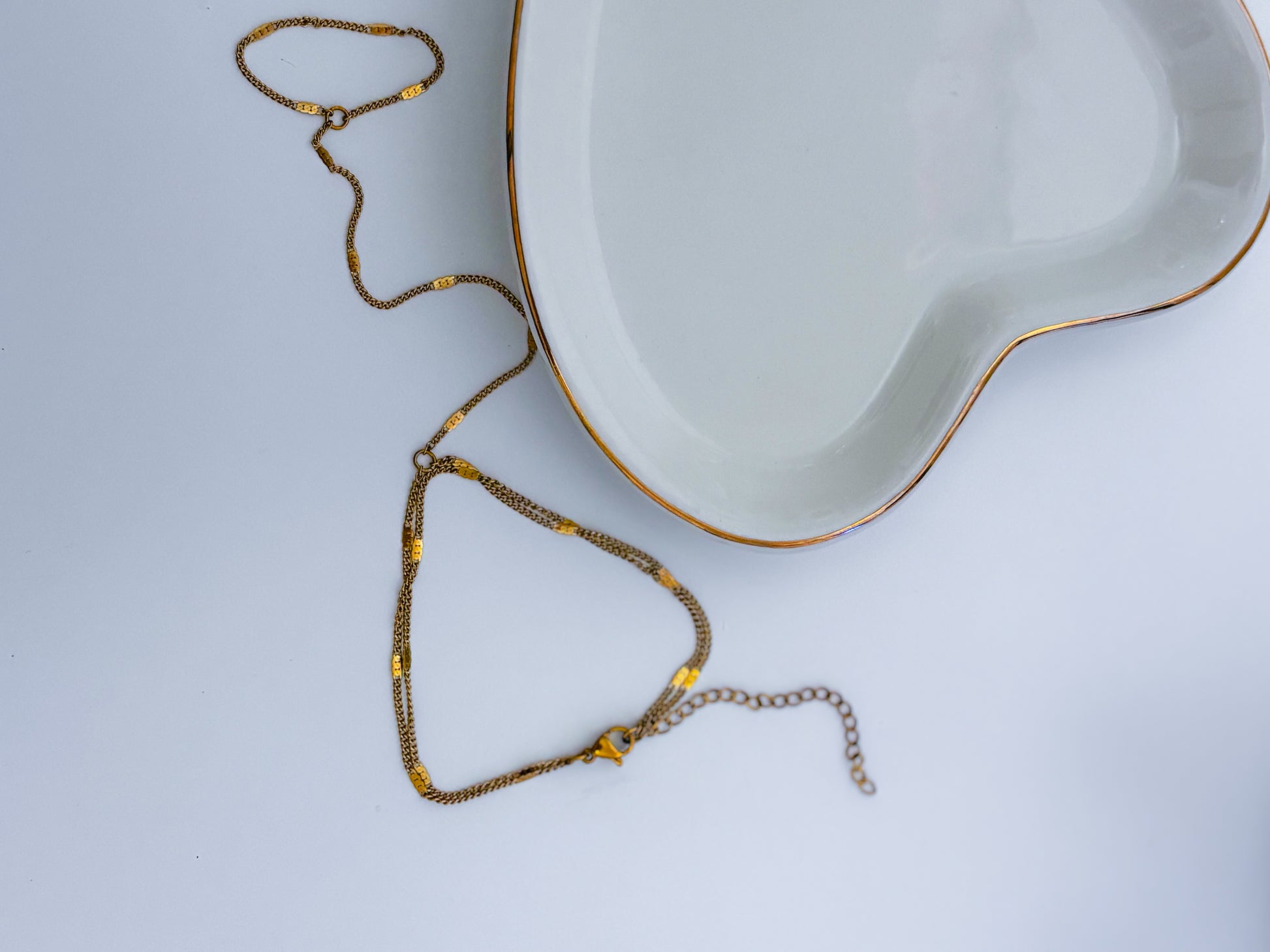Elegante y versátil, diseñada en stainless steel para acompañarte todos los días. Su detalle de aros enlazados simboliza unión y fuerza, ajustable de 7” con 2” de extensión para un fit perfecto en cualquier ocasión