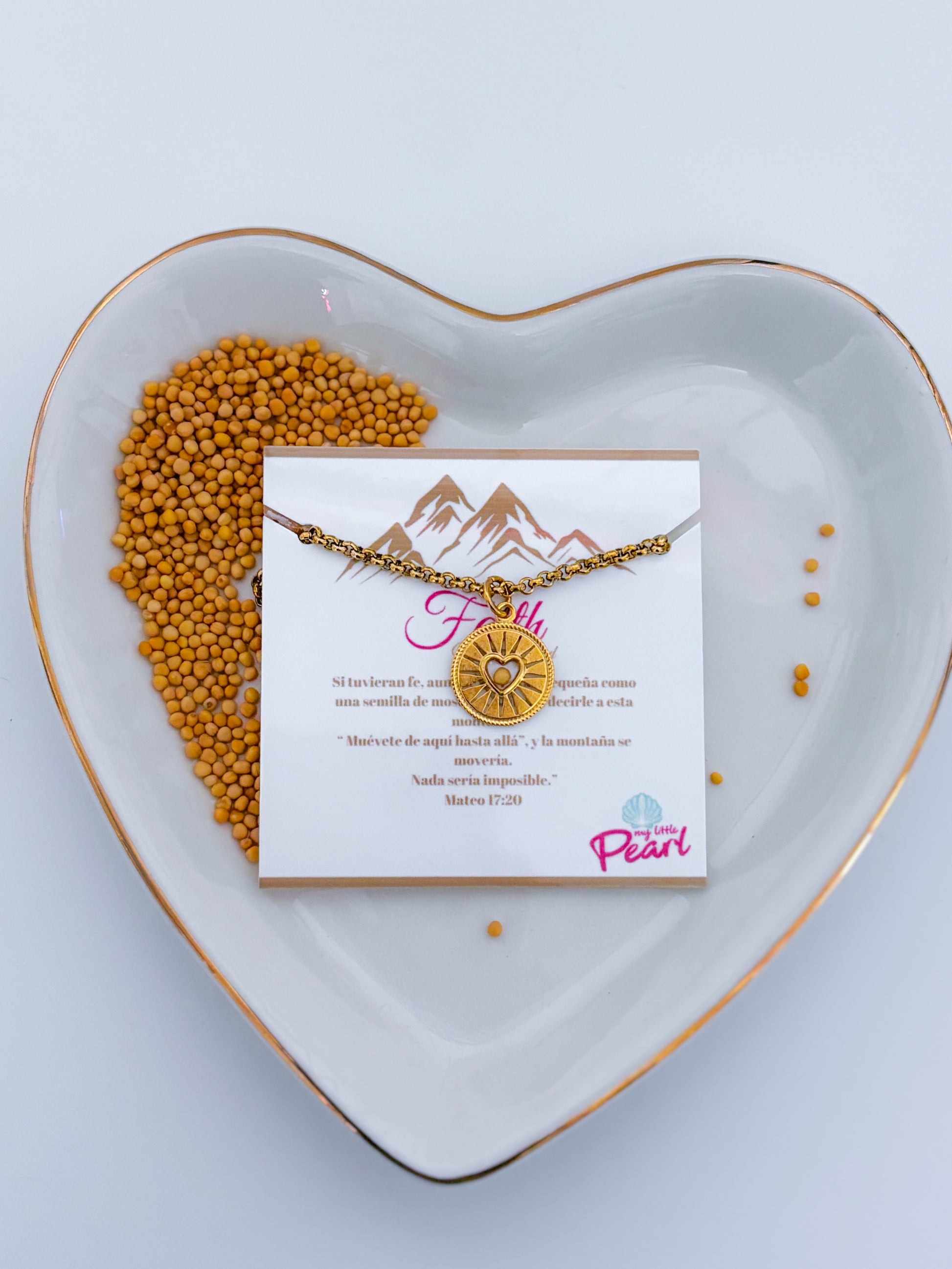 Cada pieza está inspirada en la fe del tamaño de un grano de mostaza, un recordatorio de que lo pequeño puede convertirse en algo extraordinario 🌿.