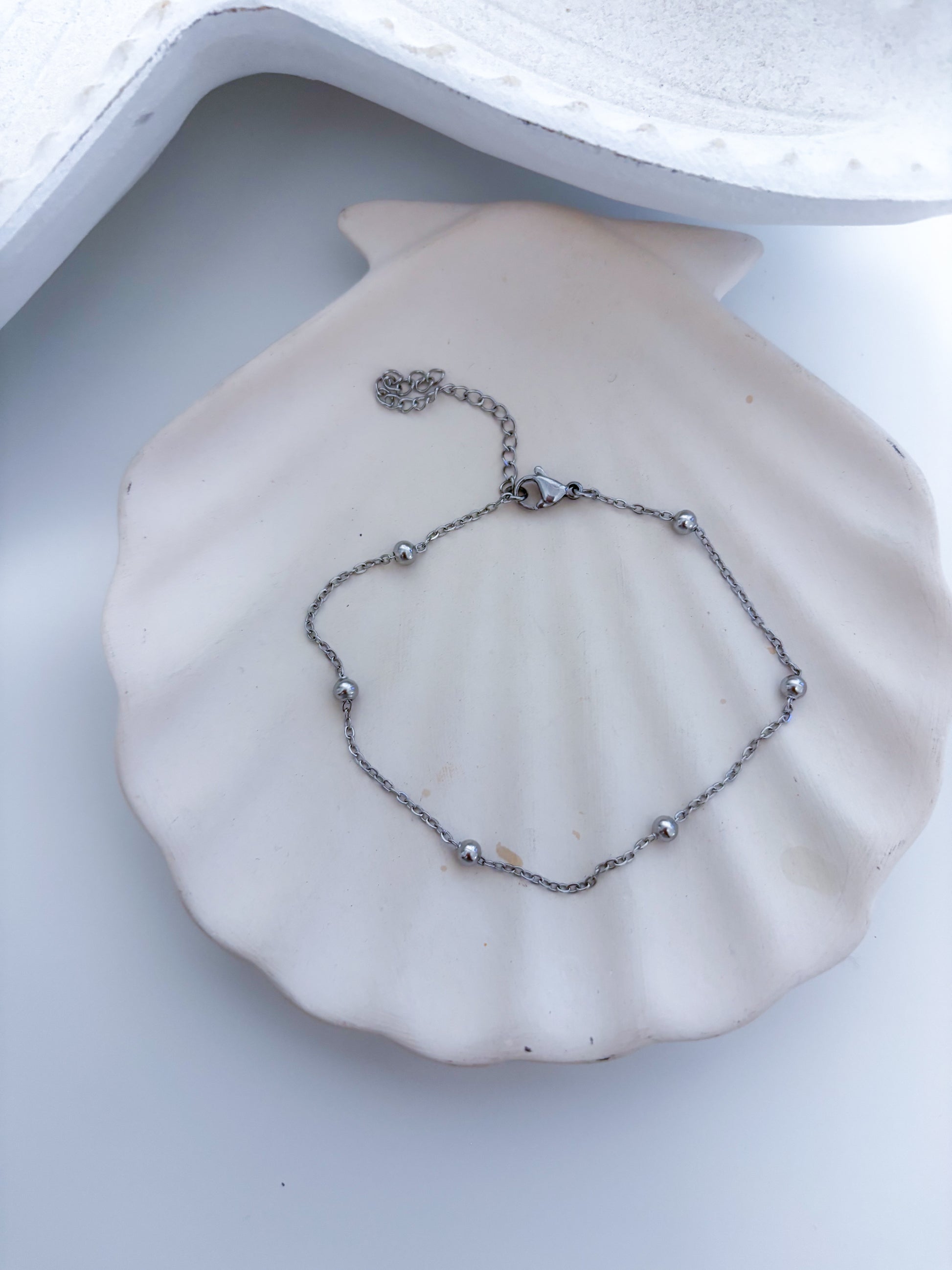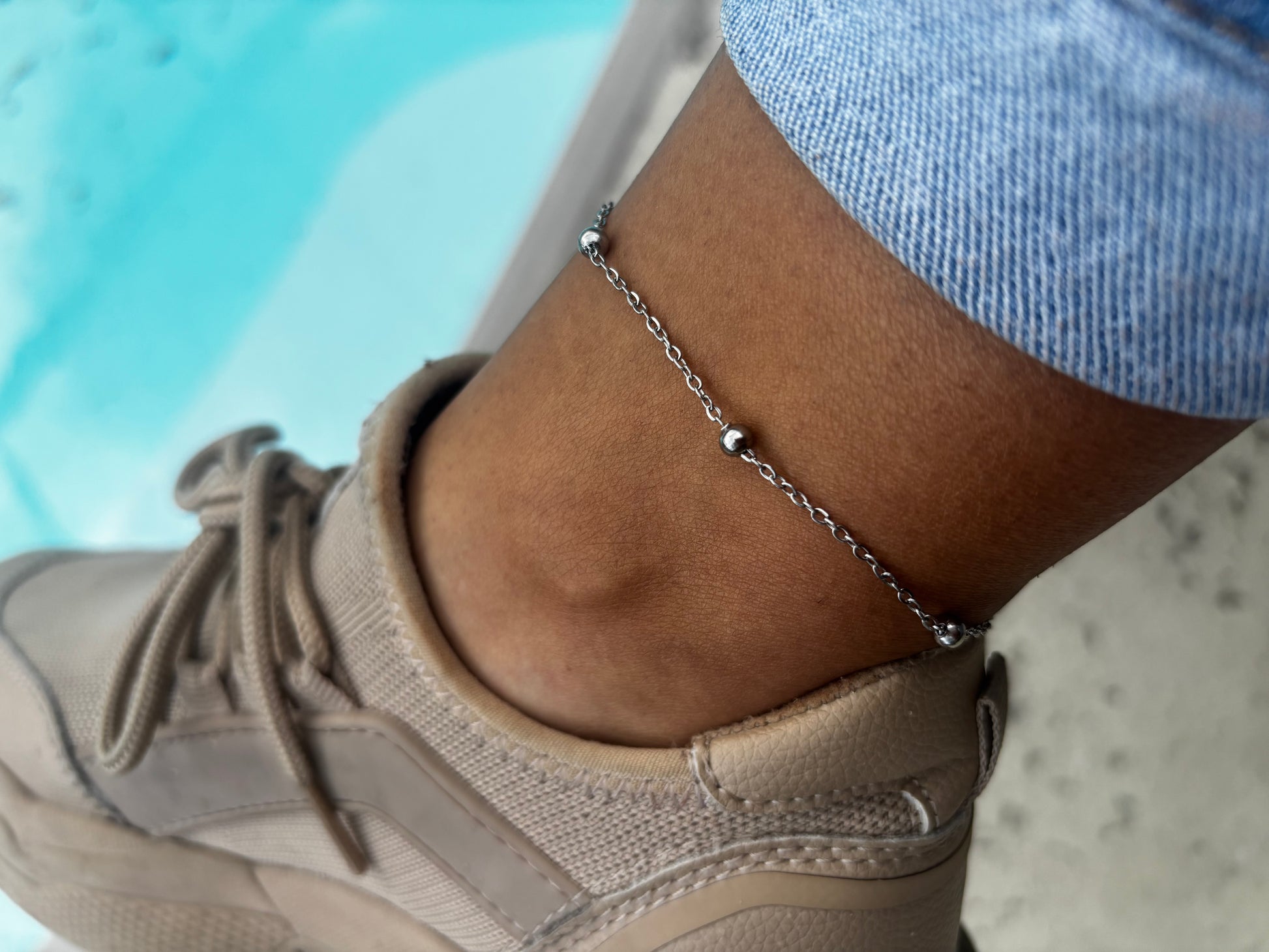 Tobillera en stainless steel, elegante, resistente al agua y perfecta para usar todos los días sin preocuparte por el color. Ideal para darle un toque delicado y moderno a tu look.