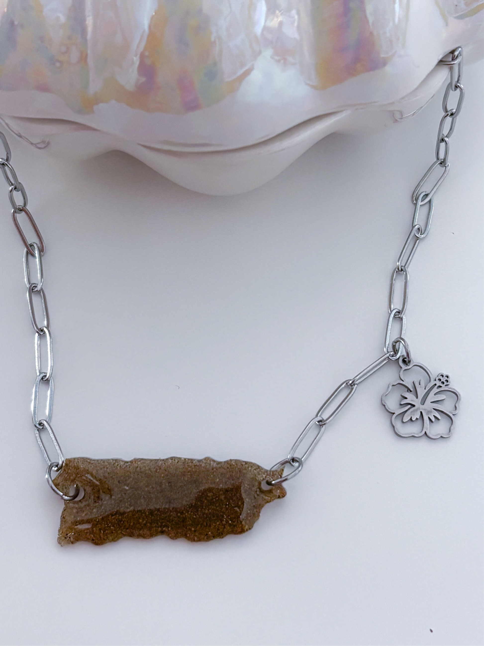 El acero inoxidable, fuerte y eterno, sostiene la arena encapsulada de las playas de Puerto Rico, llevando contigo la calidez y los recuerdos del mar boricua. 🌊