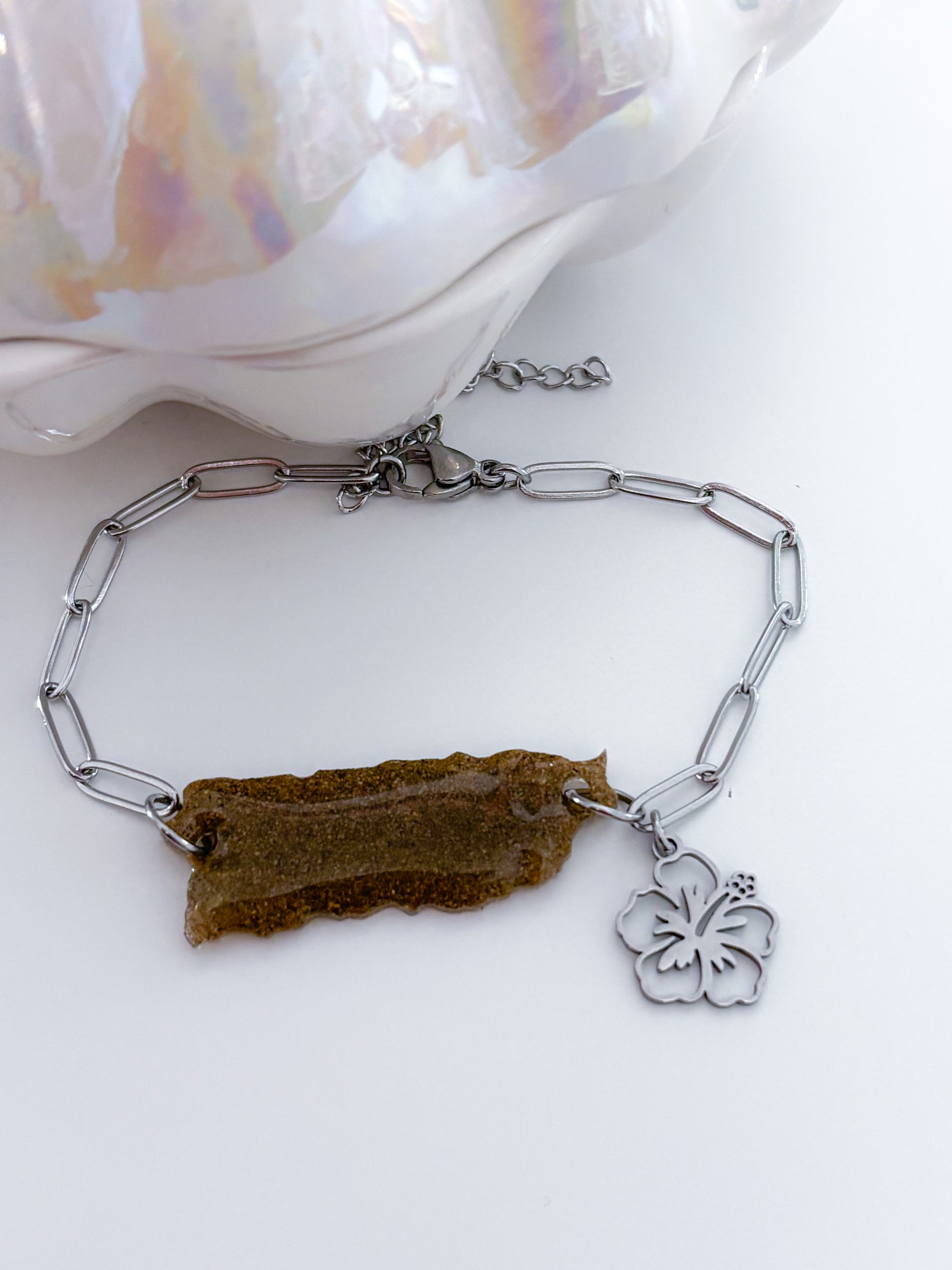 El acero inoxidable, fuerte y eterno, sostiene la arena encapsulada de las playas de Puerto Rico, llevando contigo la calidez y los recuerdos del mar boricua. 🌊
